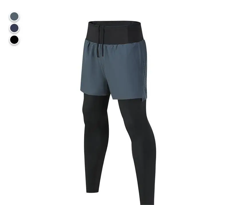 Autumn men’s marathon track and field quick-drying fake two-piece training trousers sports running fitness yoga tights