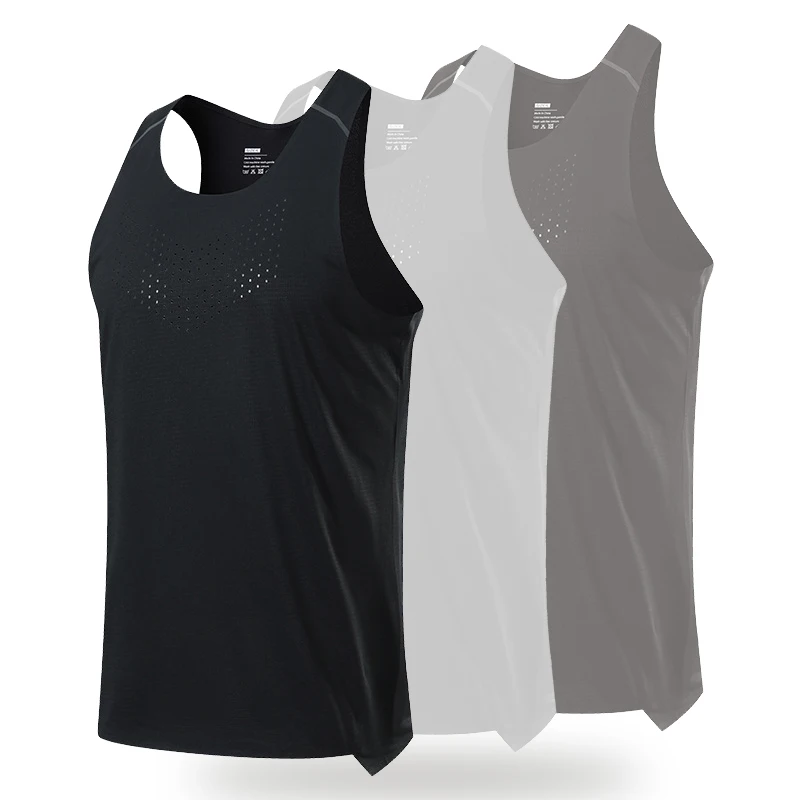 (S-2XL)Lightweight Marathon Quick Dry Tank Top Men Summer Running Fitness Elastic Mesh Sports Vest Sleeveless Shirt Gym Singlet
